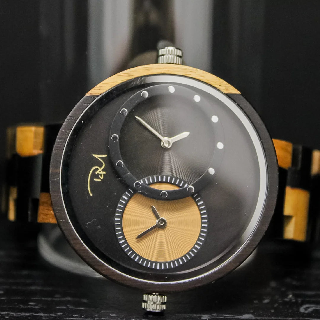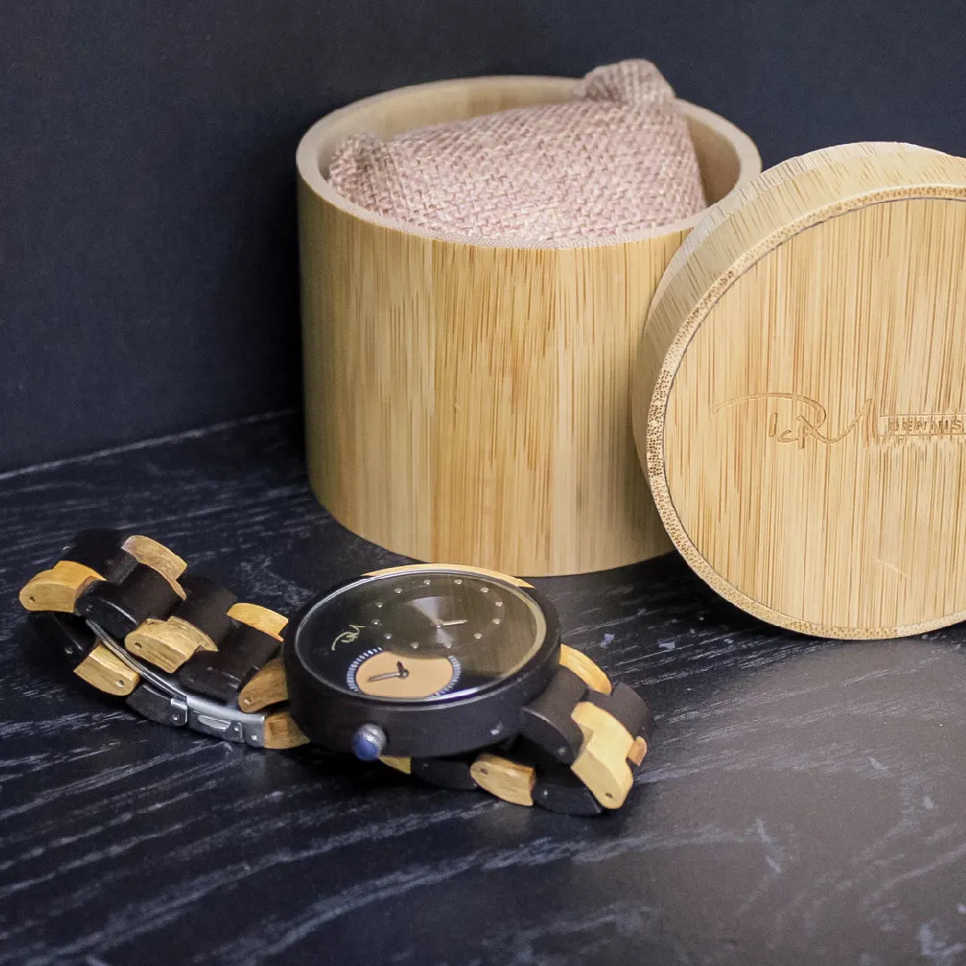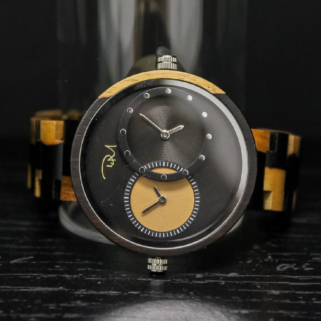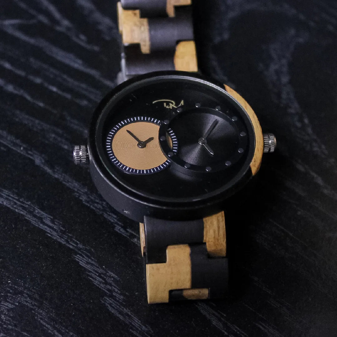 A time-honored tradition. Creatively crafted for the leader of the wolf-pack, the Nu Collection skillfully integrates bold statement pieces with native roots, to develop the perfect watch for all mavericks of the modern world This avant-garde design has a 100% black and white wood band with a skillfully crafted 44mm face, and a hidden push-button clasp to conclude its makeup. This versatile timepiece is a necessity for any spirit looking to shake up the status quo in a style unlike any other.